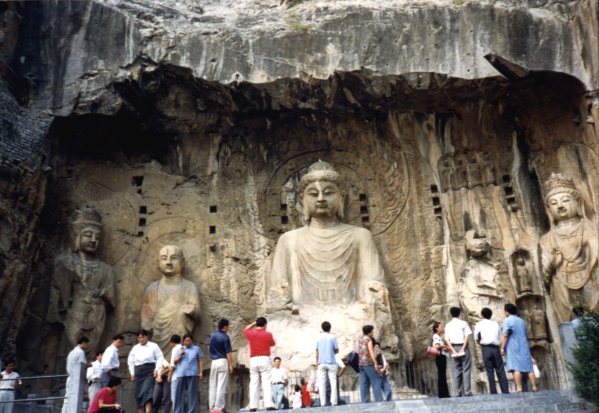 Stuk rotswand met uitgehakte budda´s (in totaal zijn er zo´n 100.000 budda´s uitgehakt uit de hele rotswand